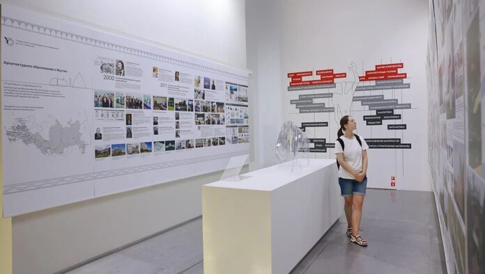 Сегодня в Москве проходит закрытие масштабной архитектурной выставки «Рождение масштаба» в Национальном центре «Россия». Среди необычных экспозиций, которые еще можно успеть увидеть, особое внимание заслуживает проект Северо-Восточного федерального университета имени М. К. Аммосова. Эта инсталляция площадью 24 квадратных метра раскрывает удивительный синтез академического образования и практической работы в суровых условиях Якутии.