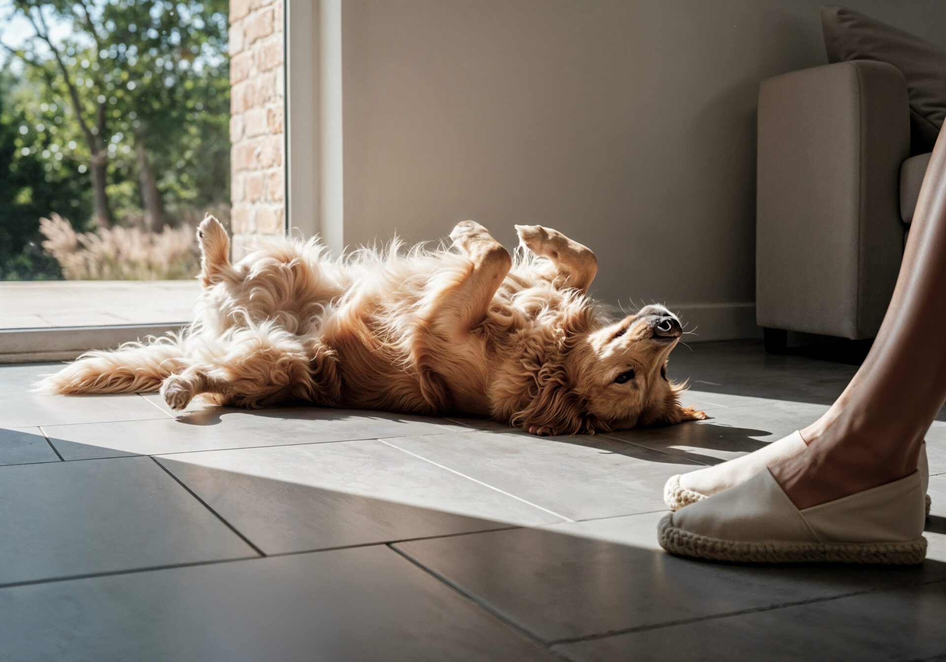 Воспитание. Научите собаку адекватно и спокойно находиться дома. Игры — на улице, дома — только сон, тихие погрызушки, игрушки, которые можно исследовать, спокойный шаг, а не галоп. Это огромный вклад в ваш порядок и спокойствие, поверьте, ну и слюней сильно меньше. Безусловно, выгул на улице должен быть регулярный, продолжительный, активный.