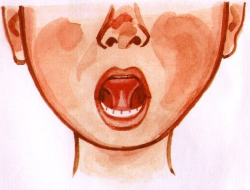 - Из такого положения медленно открываем рот, но кончик языка всё также прижат к нёбу.