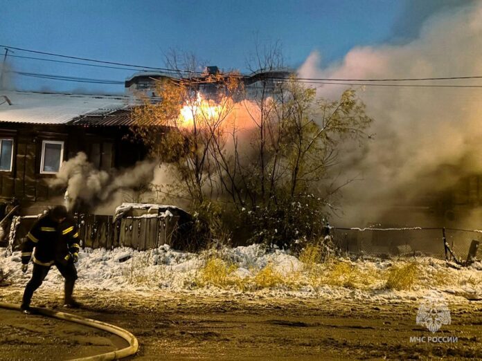 Возгорание произошло в двухэтажном частично расселенном доме на ул. Халтурина в г. Якутске.