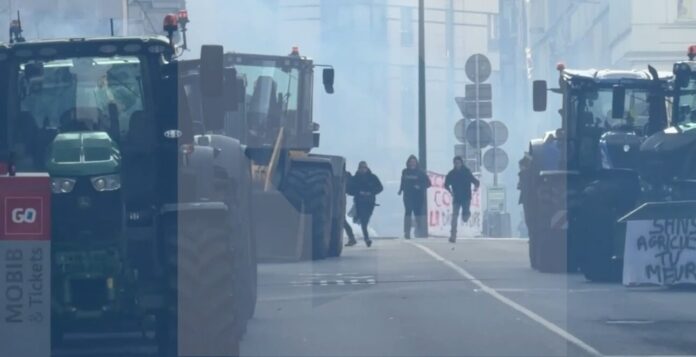 Против протестующих фермеров в Брюсселе полиция применяет слезоточивый газ — целый квартал окутан веществом — сообщает РЕН ТВ.
